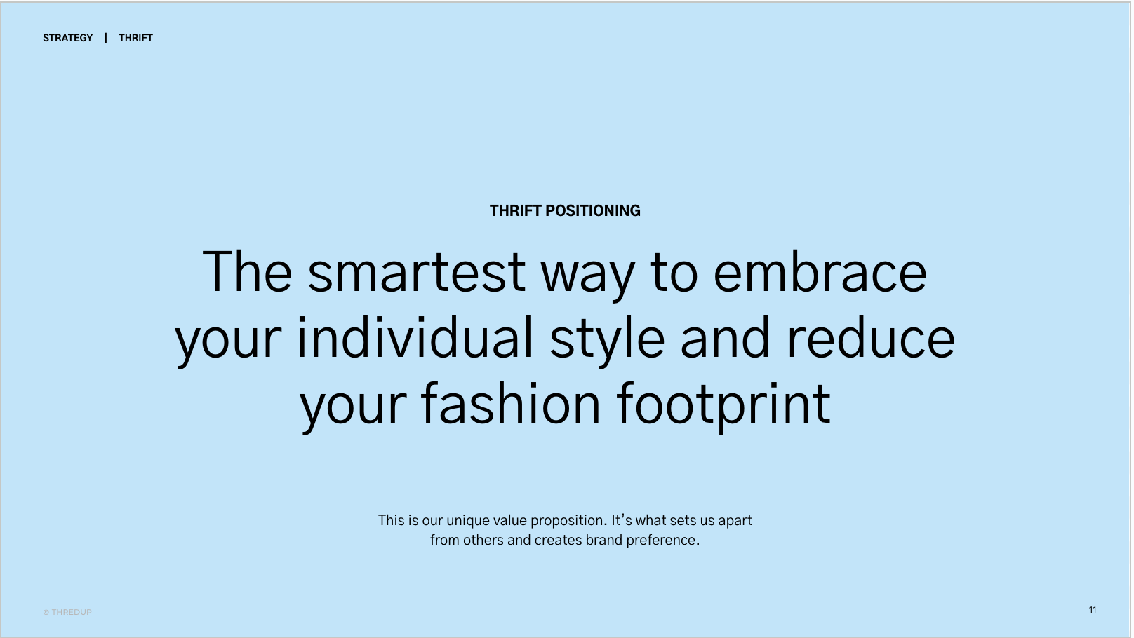 In 2024, I co-led a brand evolution that included updating our target demo, brand strategy, communication pillars, positioning statements, messaging, voice and tone, and visual elements. I co-created a Brand Camp curriculum to increase employee understanding of brand strategy and ThredUp’s new brand guidelines and presented it company-wide.
