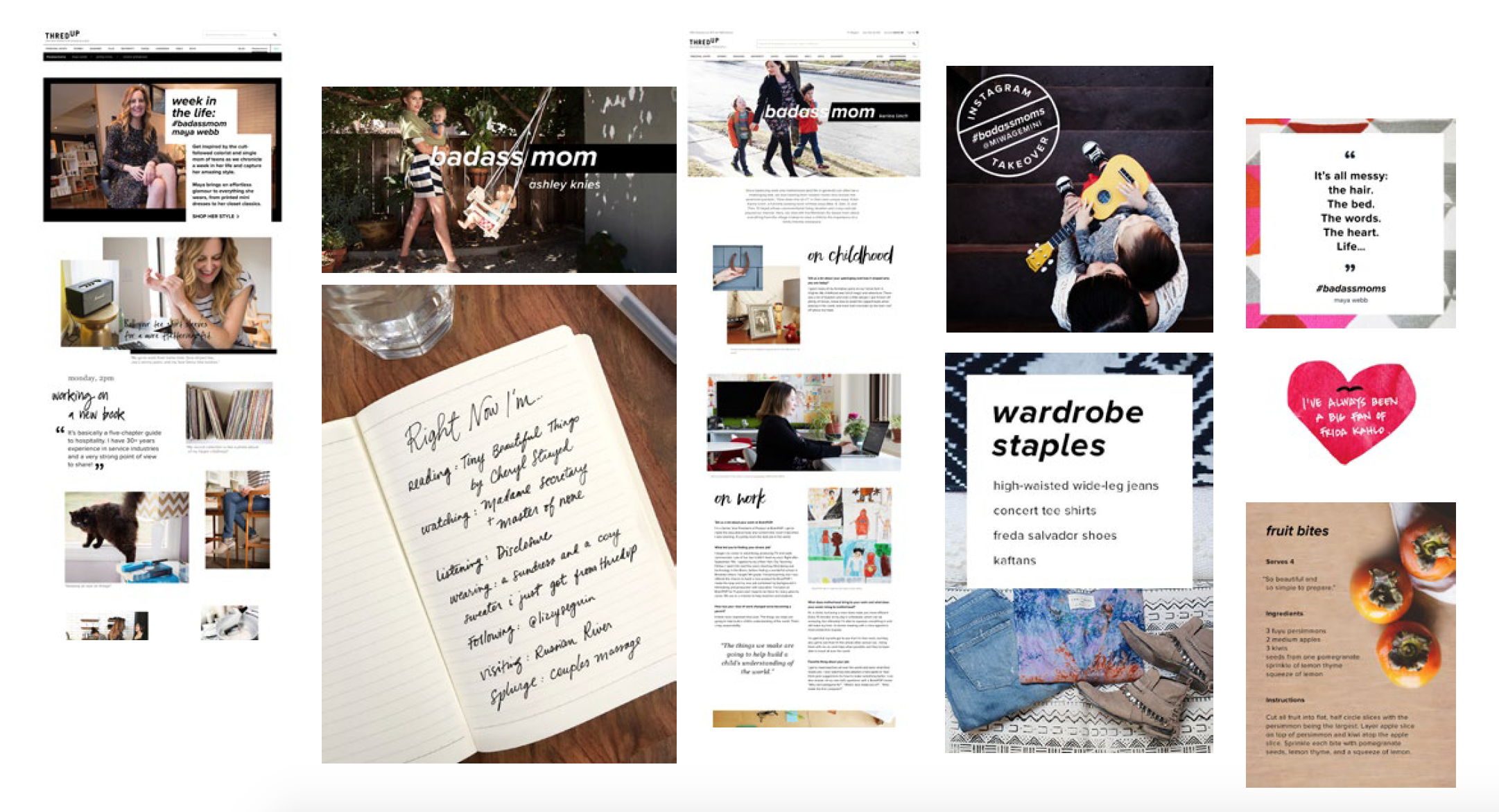 In the early days of ThredUp, we were focused on Millennial moms as our target demo. Badass Moms was the perfect outlet to share the incredible stories of our customers—from Oakland’s prolific spoken word poet Jazz Hudson to Nashville’s star journalist Megan Alexander. We used a variety of formats: long and short-form interview content, videos, podcasts, panel events, social. Here are some snippets.